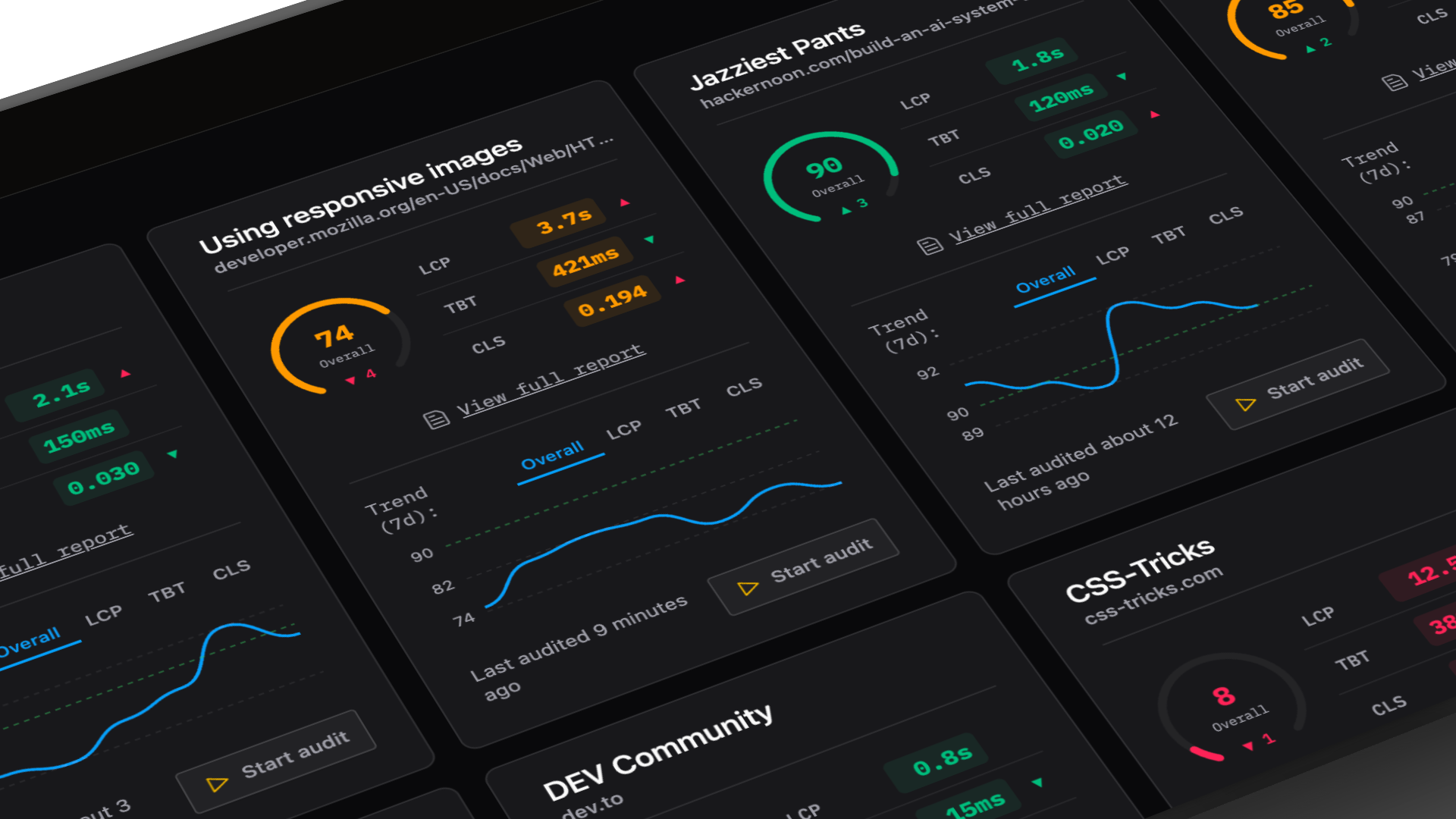 Track Core Web Vitals across deploys, not just in one-off reports.